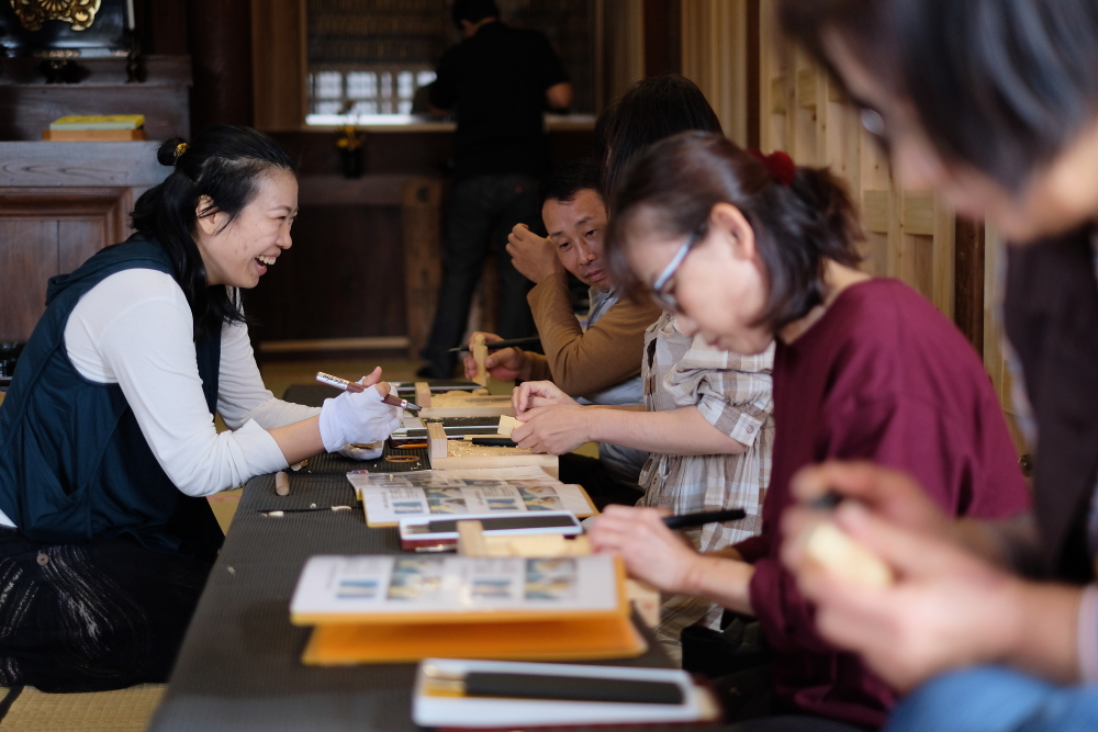 お寺や神社の欄間、柱、扉に施された精緻な彫刻を手がける職人を、宮彫り師といいます。その技術は、社寺建築とともに脈々と受け継がれてきたもの。このワークショップでは、そんな宮彫り師が直接指導し、一人一人が仏様の立像を彫り上げます。